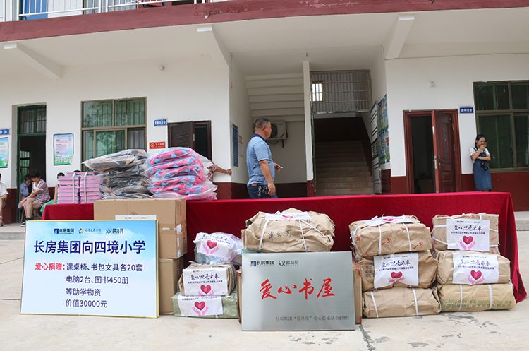 隨后,進(jìn)行了溫馨隆重的捐贈(zèng)儀式。四境小學(xué)楊林校長(zhǎng)接過(guò)捐贈(zèng)牌露出了憨厚開(kāi)心的笑容,孩子們更是喜笑顏開(kāi),對(duì)新書(shū)包和文具愛(ài)不釋手。450本兒童書(shū)籍和15套點(diǎn)讀機(jī)豐富了“愛(ài)心書(shū)屋”的藏書(shū)和設(shè)施,也傳遞著長(zhǎng)房集團(tuán)對(duì)鄉(xiāng)村孩子們濃濃的愛(ài)意。