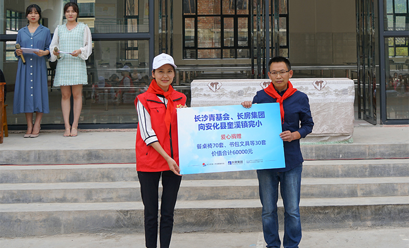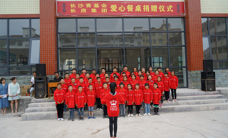“金色的駝鈴,叮當叮當,小駱駝帶著它走向遠方,追趕著春天的腳步叮當,走向綠色的希望?!敝赡矍宕嗟母杪曉诎不h奎溪鎮(zhèn)完全小學校園里響起,融化著眾人的心。2019年9月25日,長沙青基會與長房集團共同舉行的“大愛奎溪完小、情暖校園食堂”愛心餐桌椅捐贈儀式在安化縣奎溪鎮(zhèn)完小舉行。儀式現(xiàn)場,長房集團“藍絲帶”愛心傳遞基金向學校捐贈了70套餐桌椅,并給學校30名貧困學生帶來了書包、文具等新學期禮物,本次愛心捐贈價值60000元。長房集團黨群工作部負責人,長沙市青少年發(fā)展基金會辦公室負責人,長房集團十余名青年志愿者,安化縣教育基金會、奎溪鎮(zhèn)政府、奎溪鎮(zhèn)中心學校的領導及奎溪鎮(zhèn)完小師生代表出席了捐贈儀式。